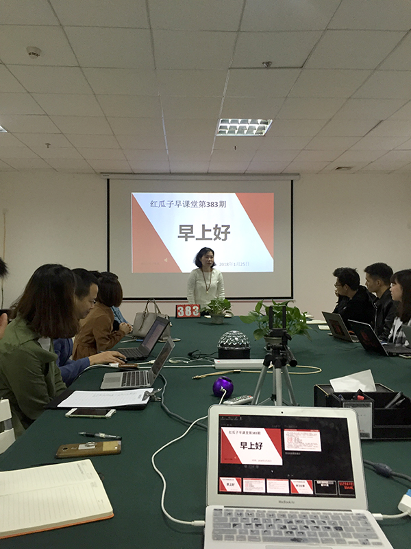 早課堂是紅瓜子傳媒部分員工自發(fā)組成的學習團隊,在每周一至周五早上7:40分開始至8:40進行一個60分鐘