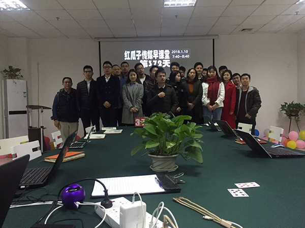 7、拍照合影留念;班長負責編輯合影背景文字(紅瓜子早課堂第xx期),收集早課堂記錄照片并分享到紅瓜子傳媒微信群