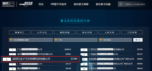 近日,由中國領(lǐng)先的職業(yè)發(fā)展平臺智聯(lián)招聘,聯(lián)合北京大學(xué)社會調(diào)查研究中心共同發(fā)起的一項尋找和評選中國最佳雇主的調(diào)查活動——“中國年度最佳雇主”名單公布。作為廣東文化傳媒行業(yè)的知名企業(yè),深圳紅瓜子文化傳媒科技有限公司榮獲“2017中國年度最佳雇主”提名獎。