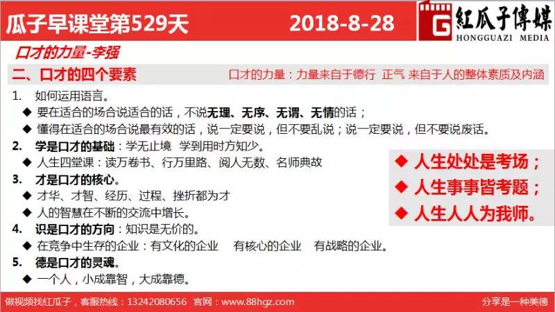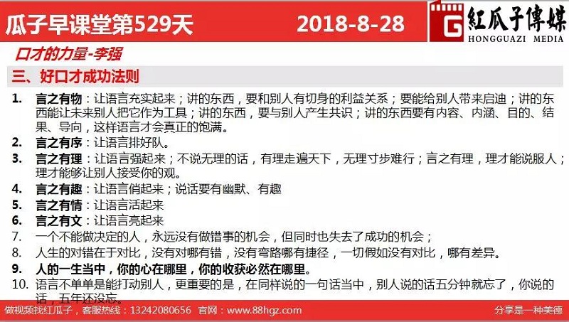 紅瓜子傳媒首頁>相關(guān)資訊>最新動態(tài)>瓜瓜早課堂第529期-口才的力量