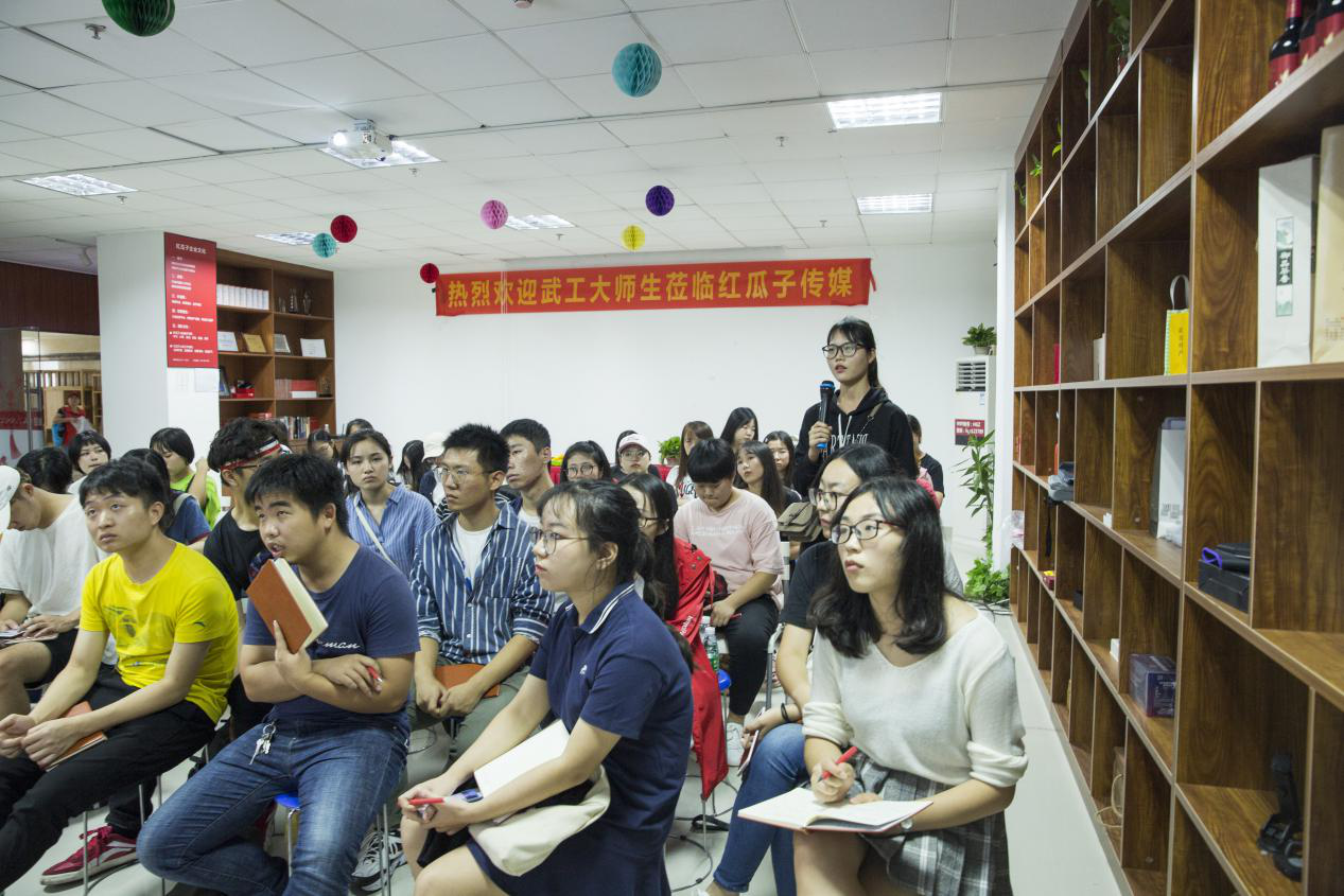 2018年10月22日,武漢工程大學(xué)藝術(shù)設(shè)計學(xué)院師生光臨紅瓜子傳媒總部參觀學(xué)習(xí)。紅瓜子傳媒董事長宋宇紅、副總經(jīng)理彭修理熱情接待并舉行了分享交流會。