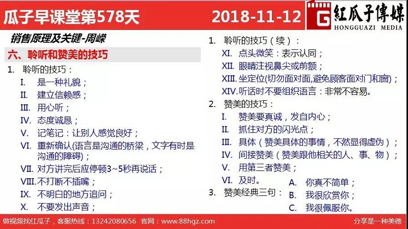 紅瓜子傳媒首頁(yè)>相關(guān)資訊>最新動(dòng)態(tài)>瓜瓜早課堂第578期-聆聽(tīng)和贊美的技巧