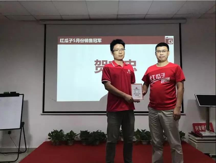 楊總為五月的銷(xiāo)售冠軍頒獎(jiǎng)