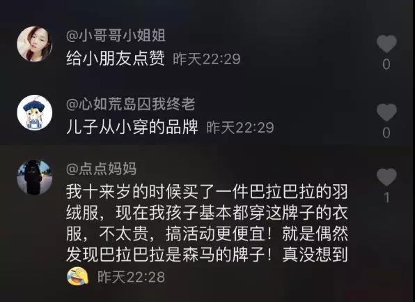 在評(píng)論中,無數(shù)網(wǎng)友開啟了對(duì)這個(gè)國民童裝品牌的熱議,很多人感慨自己是穿著巴拉巴拉衣服長大的,成為了父母還在繼續(xù)給孩子穿,看到這條視頻,無意中引起了很多童年的記憶和共鳴。