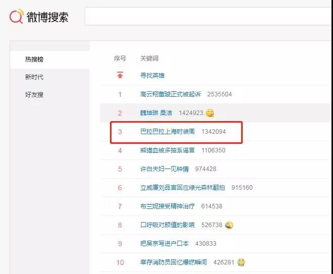 巴拉巴拉上海時(shí)裝周還登頂微博熱搜第三