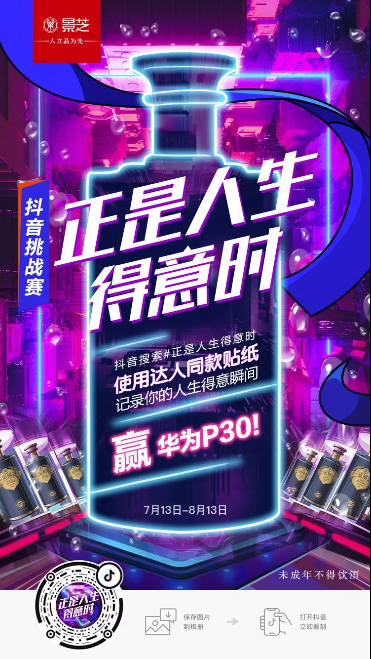 然而,近年來,隨著競爭的日益激烈,酒行業(yè)擴(kuò)張速度遠(yuǎn)超實(shí)際消費(fèi)需求。供過于求的市場競爭下,傳統(tǒng)營銷策略再也無法為酒類品牌提供穩(wěn)定市場份額。因此,新營銷時(shí)代下,不懂得如何迎合消費(fèi)者偏好、不知道如何實(shí)現(xiàn)線上用戶市場增量,已成為懸在白酒企業(yè)頭上的達(dá)摩克利斯之劍。線下地區(qū)壟斷銷售境況一時(shí)難以打破,酒類品牌亟需線上消費(fèi)的動(dòng)力加持。那么該如何緊抓消費(fèi)者、培養(yǎng)線上用戶品牌黏度?基于短視頻APP移動(dòng)用戶覆蓋廣滲透高的特性,白酒品牌景芝酒業(yè)將頭部平臺(tái)抖音擇為其線上營銷的陣地,借此開辟營銷新渠道。景芝酒業(yè)在抖音發(fā)起#正是人生得意時(shí)#區(qū)域互動(dòng)賽,聚焦山東地區(qū),借助貼紙互動(dòng)、達(dá)人視頻等元素,一舉將“正是人生得意時(shí),喝一品景芝”的核心理念傳遞給目標(biāo)受眾,為白酒行業(yè)示范了一次創(chuàng)新營銷的正確打開方式。截止日前,挑戰(zhàn)賽播放量已達(dá)4.7億,互動(dòng)量1047萬+。