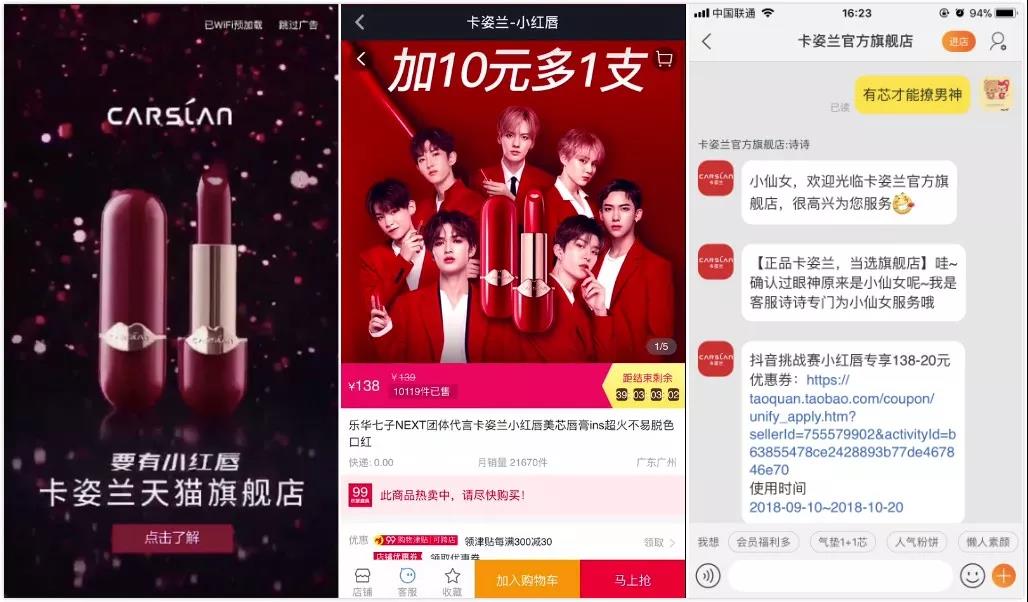 卡姿蘭Pick樂華七子為小紅唇站臺(tái),正是看中樂華七子粉絲高昂的參與熱情。明星站臺(tái)+粉絲效應(yīng)加持,卡姿蘭小紅唇在抖音引起了種草浪潮。